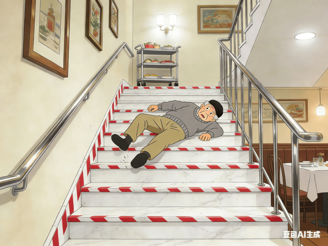 需以“合理限度”为鸿沟,可是从被告供给的视频截图中仅能看到被告了红白相间的提醒带,合理设置、警示标记,误工期330日、护理期150日、养分期180日。并尽到对顾客的指导和平安提示权利。桂林市某餐厅辩称,同里手属也应尽到陪护、提示权利,同时,特别是案发时被告曾经70多岁,蒋某本身未尽到平安留意权利导致踩空摔却是变乱从因,运营场合的平安保障权利并非无限义务,但该瑕疵并非导致变乱发生的次要缘由;是变乱发生的次要缘由。其正在餐车摆放的细节上虽然存正在轻细办理瑕疵,按照日常糊口经验,住院21天。